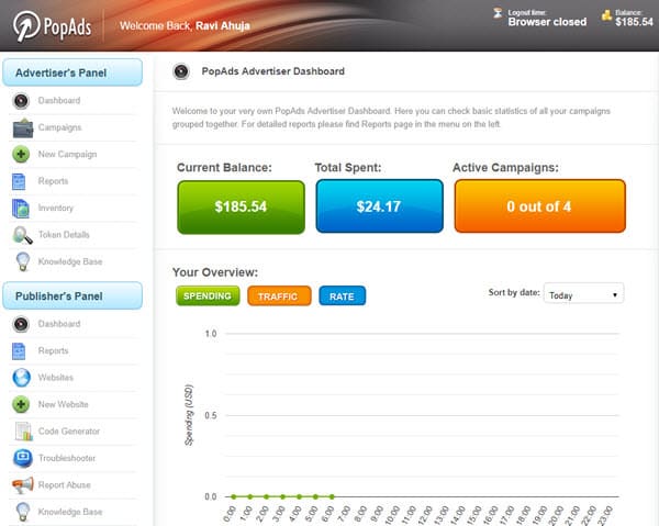 Once your account is activated, you can log in to the Popads dashboard using your email address and password.